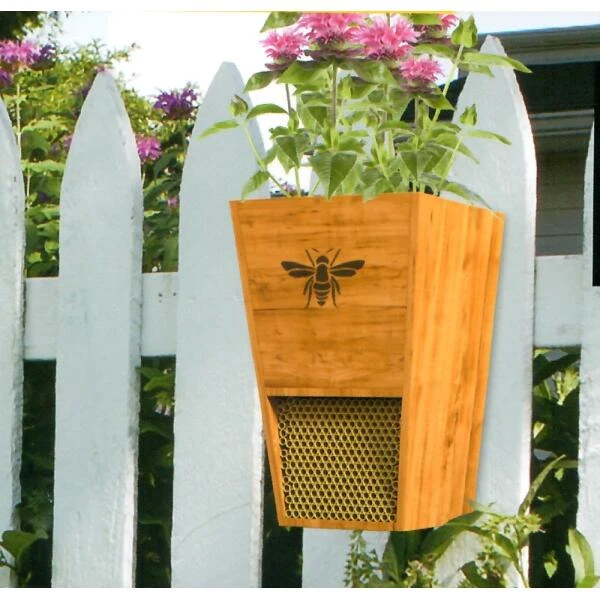 Deze stevige constructie combineert een voedsel- en broedplek voor bijen.