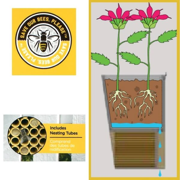 Een uniek bijenbloembakhuis: een bloembak met een ingebouwde bijenhotel om op een optimale manier solitaire bijen en andere nuttige insecten te lokken voor de bloemen in de tuin. Wat een goed idee!