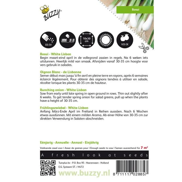 White Lisbon heeft een lekkere smaak en is wat pittiger dan de gewone Hollandse uien. Bosuitjes zijn heerlijk in bijvoorbeeld rauwkostschotels en soepen.