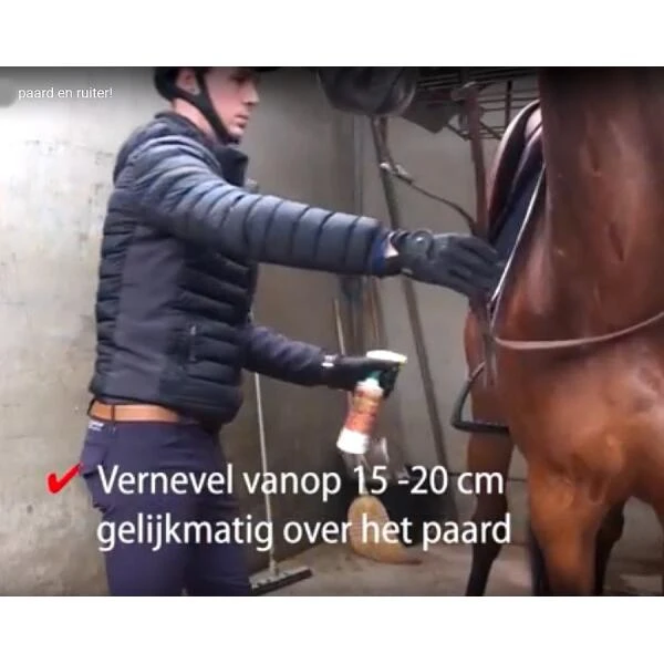 Het product is op basis van icaridine, heeft een snelle werking en beschermt paarden 24u lang tegen stekende en niet stekende insecten. Het product heef een aangename geur, vlekt niet en kleeft niet.