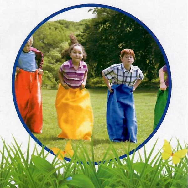 - “3-benen-race”: 2 klittebanden. Bind 1 van je benen vast aan dat van een teamgenoot en race zo snel mogelijk naar de eindmeet.