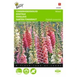 Dit pakje bevat een heel mooi mengsel, met fijne kleurschakeringen, van vingerhoedskruid. De tot wel 5 cm grote bloemen in de lange trossen zijn aan de binnenkant gespikkeld. De wilde vorm is bij ons inheems. Vingerhoedskruid verdraagt vrij veel schaduw.