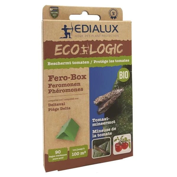 Deze feromonen helpen om de tomaatmineermot te lokken. Zo worden mannelijke motten weggevangen waardoor de vrouwtjes enkel nog onbevruchte eitjes leggen en er zich geen larven meer kunnen ontwikkelen om gangen in de planten en de vruchten te vreten.