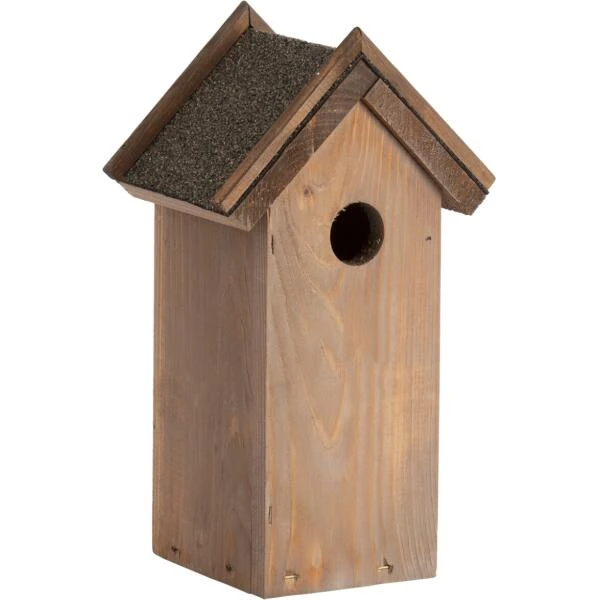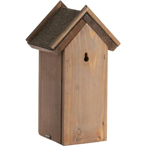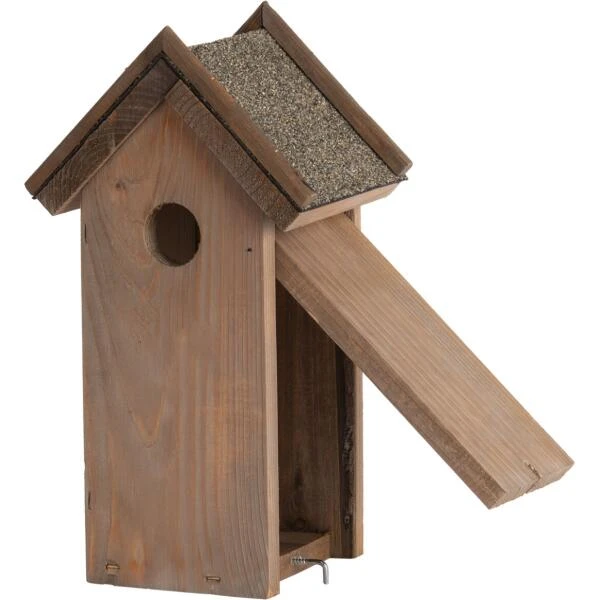 Dit naturel houten nestkastje heeft een invliegopening van 28 mm. Via het zijpaneel kan de nestkast makkelijk gereindig worden. In de winter biedt dit vogelhuisje voor vogels de ideale schuilplaats tegen het slechte weer.