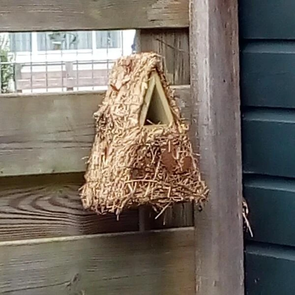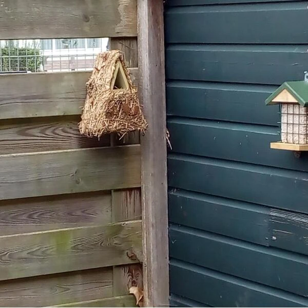 De winterkoning is een klein vogeltje dat houdt van een goed verstopt en gecamoufleerd nest. Daarom is deze nestkast bekleed met takjes, mos en grassen. Hierdoor gaat het volledig op in zijn omgeving en valt het niet op.