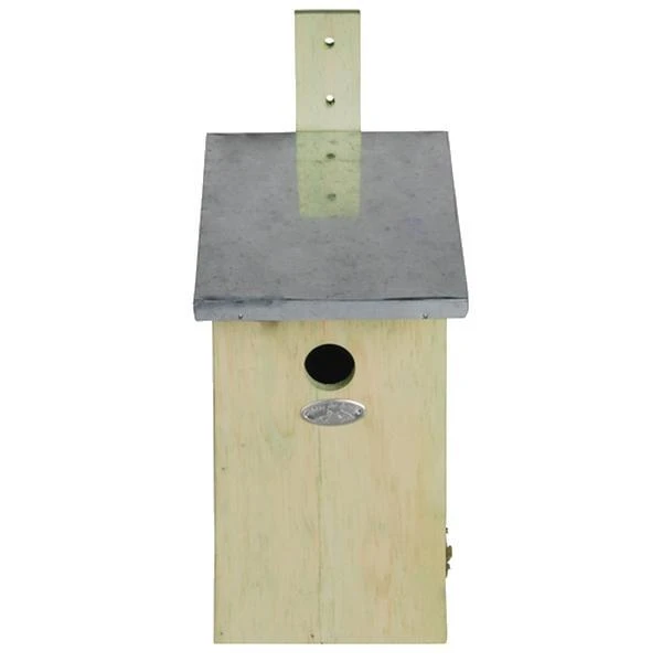 De nestkast is gemaakt uit hout en voorzien van een zinken dak . Dankzij de ophanglat aan de achterzijde kan je de observatiekast eenvoudig ophangen.