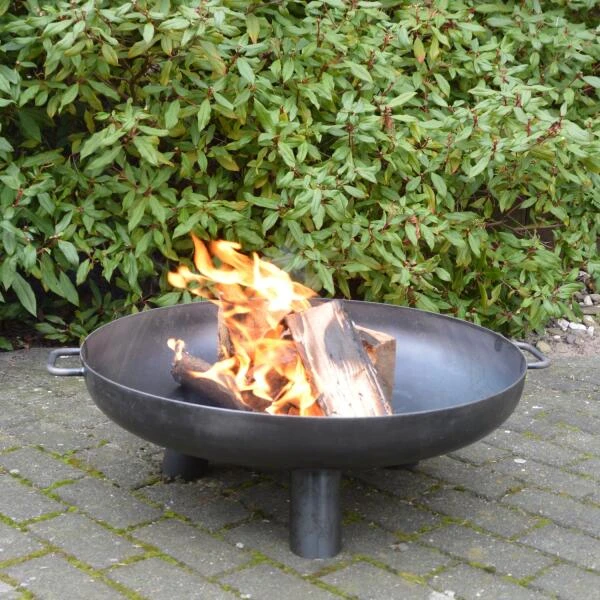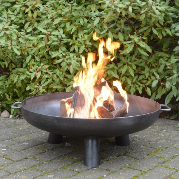 De schaal is gemaakt uit staal en is afgewerkt met een zwarte coating. Door de drie vaste ronde poten staat de vuurschaal stevig op de grond. Met de twee voorziene handvaten kan je de schaal makkelijk verplaatsen na gebruik. Onder invloed van vuur, weer en tijd zal de schaal een natuurlijke patine krijgen.