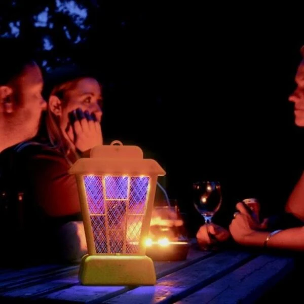 Deze insectenlantaarn kan zowel hangen als staan en lokt vervelende insecten die overlast veroorzaken. De insecten vliegen naar de vier ingebouwde ledlichten en komen in aanraking met het elektrische raster en worden op die manier op snelle en hygiënische wijze verdelgd.