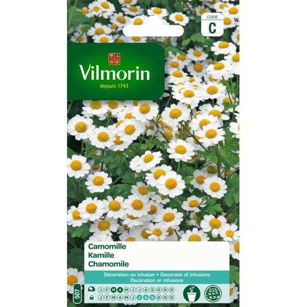Kamille of Matricaria chamomille, deze decoratieve kruidenplant vormt een massa aan mooie, kleine bloemetjes die doen denken aan kleine margrietjes.