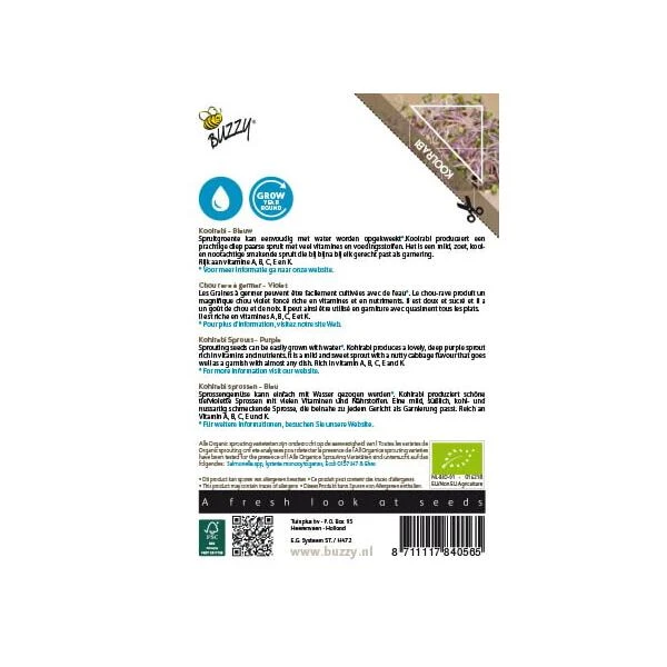 Uit koolrabi zaden groeien mooi paarse spruiten die heel veel vitaminen en mineralen bevatten. Ze zijn mild, zoet en wat nootachtig van smaak en passen bijna bij elk gerecht als garnering. Koolrabi spruiten kan je makkelijk zelf kweken door een dun laagje zaad in een zaaitoren te strooien of op ongeparfumeerde watten te leggen. Door de zaden vochtig te houden zullen ze snel kiemen. Na een aantal dagen zijn de kiemspruiten klaar voor consumtie. Spruitgroenten zijn supergezond en rijk aan vitamine A, B, C en K.