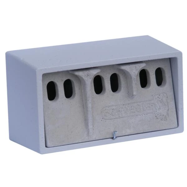 Mussennestkast in duurzaam houtbeton. Huismussen zijn echte koloniebroeders en hun zoektocht naar natuurlijke nestplaatsen wordt steeds moeilijker. Hun naam verklapt het al een beetje, ze houden ervan in de buurt van huizen te wonen. Hang deze nestkast dus tegen een schuur of woning of beter nog, gebruik ze als complete inbouw in een nieuwe constructie.