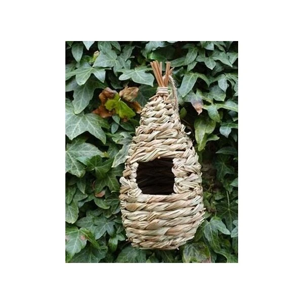 Deze natuurlijke nestbuidel is de gedroomde slaapplaats of nestplaats voor winterkoninkjes, kleine tuinvogels en verschillende volièrevogels. Het nest beschermt de vogels tegen allerlei weersomstandigheden en bestaat uit geweven grasachtigen of andere natuurlijke materialen. Makkelijk omhoog te hangen dankzij een ophanglus.