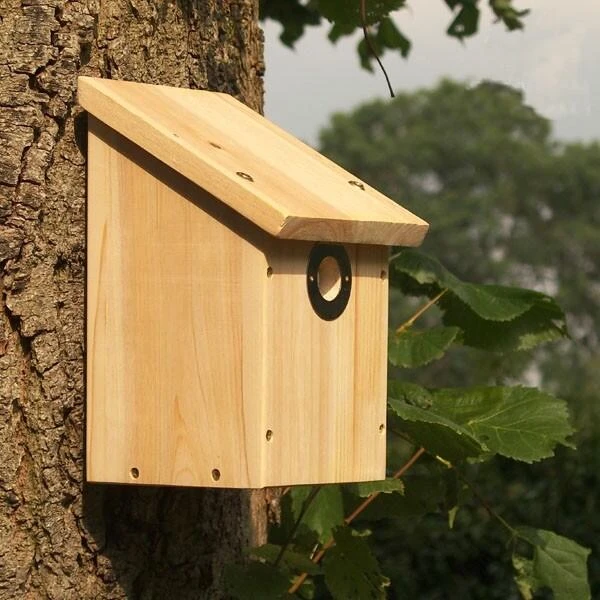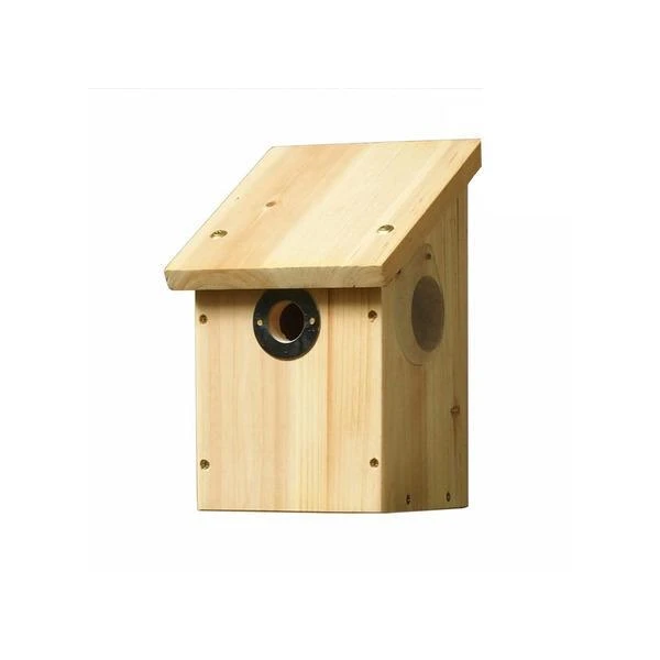 Duurzame houten nestkast met cameraclip en plexiraampje voor optimale camerabeelden. Deze houten nestbox is gemaakt uit duurzaam traaggroeiend hout. Dankzij het gebruik van traaggroeiende houtsoorten heeft deze volledig natuurlijke kast geen nood aan enige vorm van chemische behandeling.