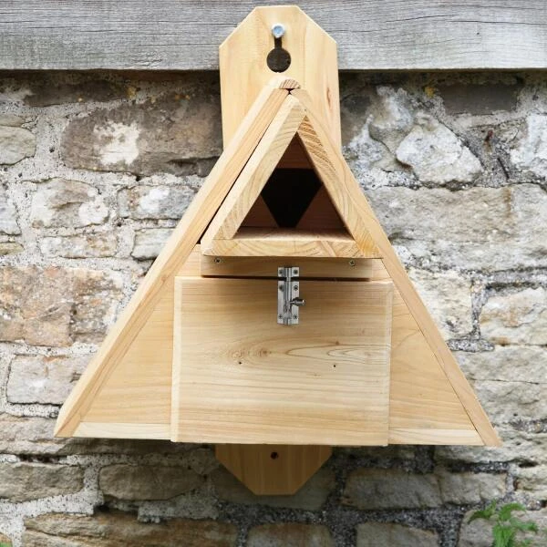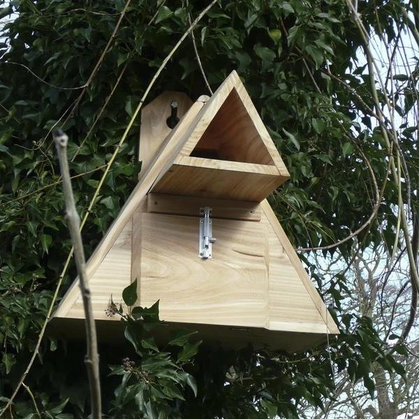Kwalitatieve, robuuste uilenkast met inlooptunnel en tussenwand voor het beschermen van onze kleine steenuil. De uilenkast wordt compleet geleverd met een afsluitbaar inspectie / reinigingsluik en een klein centraal invlieggat binnenin de invliegtunnel om op die manier grotere uilen te weren.
