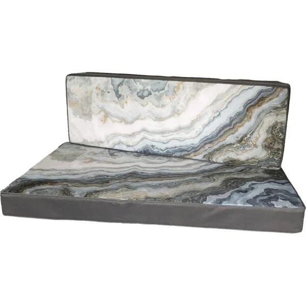 De zitkant is voorzien van een marmersteen print. De onder- en zijkanten zijn effen gekleurd in antracietgrijs.