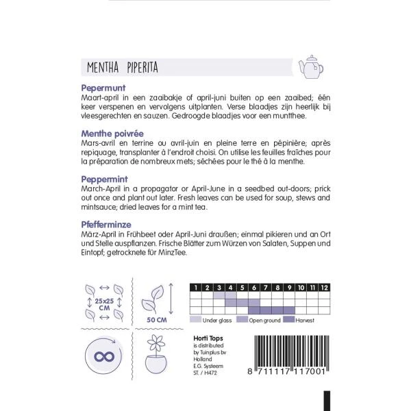 Lekkere soort voor een heerlijke verse muntthee. De blaadjes kunnen zowel gedroogd als vers in thee worden gebruikt. Vers ook heerlijk bij visgerechten en verschillende sauzen. Overblijvende vaste plant met paarse bloemen die veel insecten aantrekken.