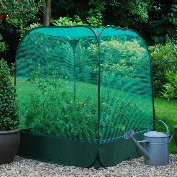 Deze pop-up kas is 1,2 m en is gemaakt uit insectengaas om los te plaatsen in de tuin of om te plaatsen boven een groeibed.