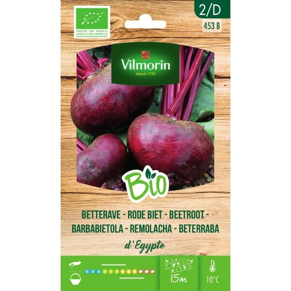 Wil je graag zelf rode bieten kweken en liefst biologisch? Kies dan voor de biologische zaden van Vilmorin. Rode biet d’Egypte is een variëteit met middelgrote, platte bietjes met smakelijk donkerrood vruchtvlees. Deze supergezonde groente mag niet ontbreken in de moestuin. Het zit boordevol nutriënten en antioxidanten, het verlaagt de bloeddruk en heeft een positieve invloed op de cholesterol. Rode bieten bewaren lang en kunnen ook ingemaakt worden of verwerkt worden tot sap.