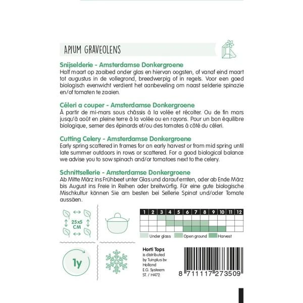 Vanaf maart onder glas zaaien, en hiervan oogsten. Of vanaf eind maart tot augustus in volle grond zaaien, breedwerpig of in regels. Combineer met spinazie en/of tomaten voor een goed biologisch evenwicht.