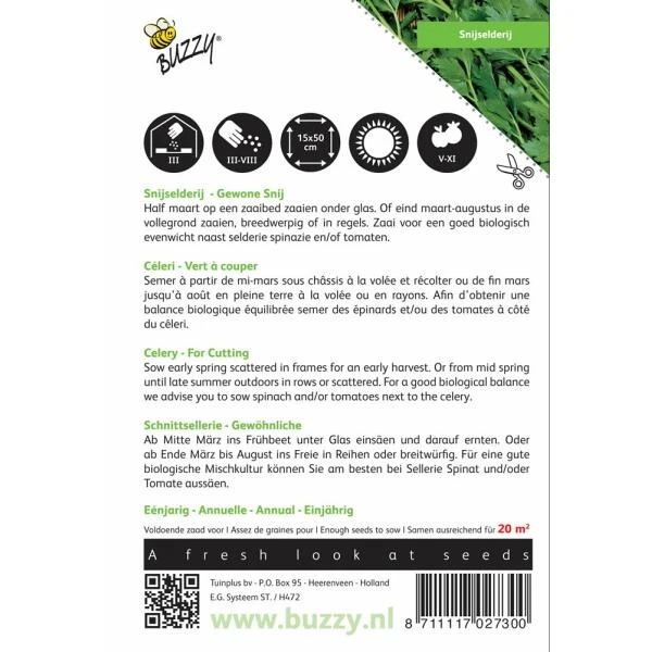Zaden snijselderie zaaien: vanaf half maart op zaaibed onder glas en hiervan oogsten, of vanaf eind maart tot augustus in de vollegrond, breedwerpig of in regels.