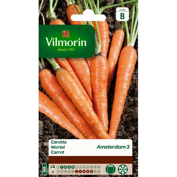 Primeurvariëteit Wortel Amsterdamse bak voor de vroege uitzaai onder koud glas en in volle grond. Vormt zeer gelijkvormige en middelgrote wortelen.