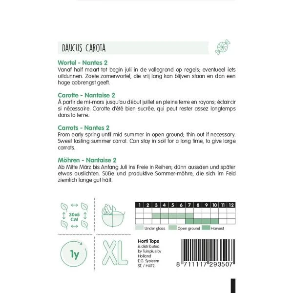 Zomerwortelen Nantes 2 geeft tamelijk grote, lange, slanke zomerwortelen met een mooie kleur en vorm. Ze zijn heel gelijk van vorm en heerlijk zoet. Nantes verdraagt iets drogere grond beter dan andere rassen. De planten vormen tamelijk veel loof.