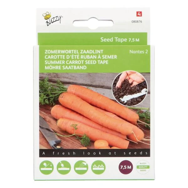 7,5 meter per verpakking. Seed Tapes zijn de perfecte manier van zaaien op plaatsen waar de ruimte echt telt in bakken, verhoogde bedden, of een kleine tuin.